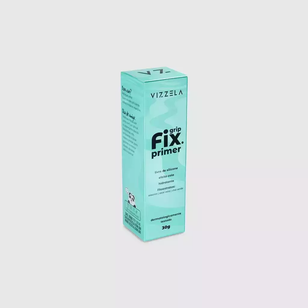 O GRIP FIX PRIMER VIZZELA é um primer hidratante enriquecido com Fucogel, Colágeno Vegetal e Extratos de alecrim, aloe vera e chá verde. Ele possui uma tecnologia de adesão na pele (efeito cola) garantindo maior aderência da maquiagem. O primer garante uma pele mais hidratada e promove um efeito tensor ajudando a deixar o acabamento da maquiagem mais bonito. Com uma formulação refrescante e leve livre de silicones.